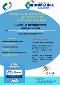 per il giorno 13 OTTOBRE 2025, dalle ore 08.00 alle ore 11,00 in modalità ONLINE Assemblea Sindacale Regionale.